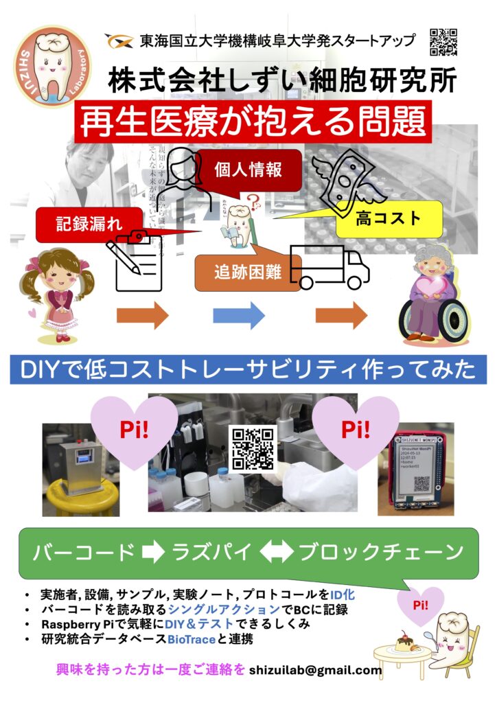 現在は、岐阜大学の秘密保持契約や共同研究契約の仕組みを使って企業や機関とソースコードやノウハウを共有しています。株式会社しずい細胞研究所の役目は、専用デバイスの設計のお手伝いをすることです。幅広いトレーサビリティのニーズに合わせた柔軟なカスタマイズ(DIY)が可能ですので、ご興味のある方はぜひお問い合わせください。